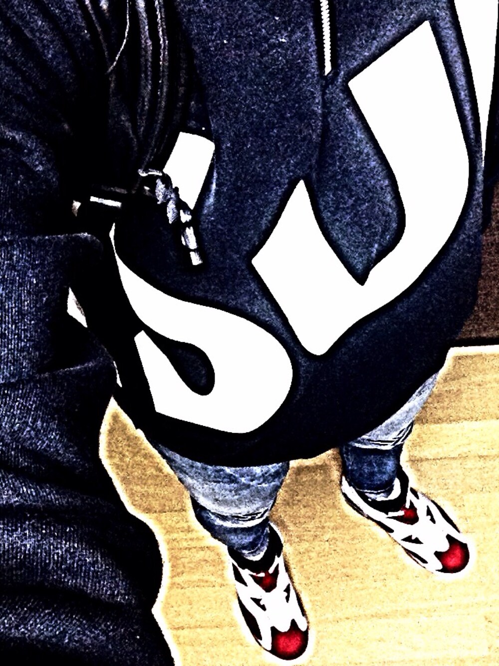 👕トップス: Supreme 15fw 👖ボトムス: ZARA バイカーデニム 👟キックス: AIR JORDAN6 Carmine