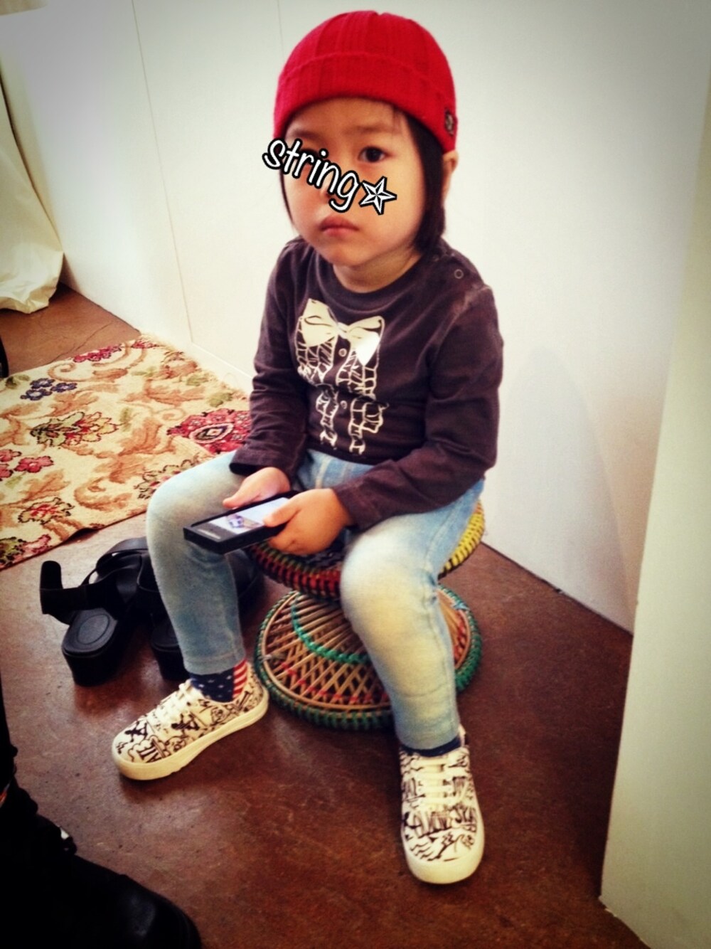 古着屋にて。 母ちゃん試着待ち。 手にはスマホ。 現代っ子。