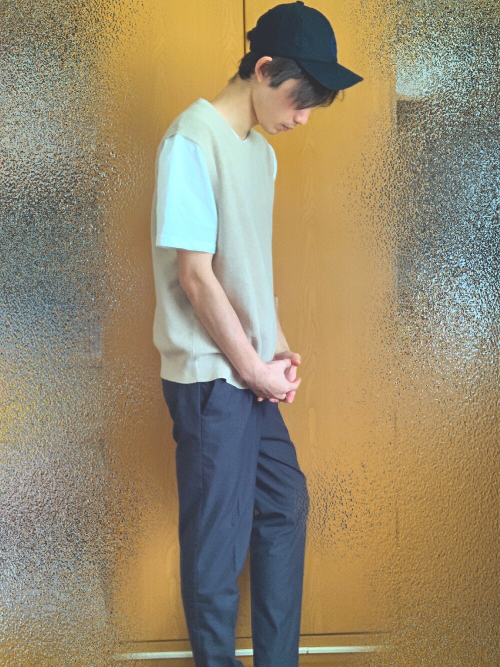 ベスト UNIQLO オーバーサイズクルーネックベスト(L) Tシャツ UNIQLO クルーネックT(XL) キャップ UNIQLO×イネス ベースボールキャップ パンツ HARE 詳細不明 ベストにスラックスというドレスライクな着こなしを、キャップを被ることでカジュアルに寄せました。 ベストは人気アイテムだったので キャップを被ることで周りと差別化出来ると思います。 キャップはイネスコラボのもので ロゴは可愛いし、サイズを調整する所はレザーになってます。