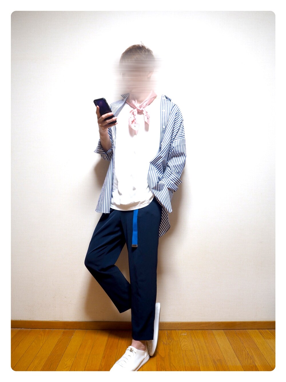 UNIQLO エクストラファインコットンオーバーサイズシャツを使ったコーディネート 身長180cmの自分は 3XLで袖丈が丁度良くなると思います。 全体を青系+白で整えて 首元にピンクを差し色にしてあげて 春っぽさをイメージ。 トップス、パンツはレディースを着用してます。 全然メンズでもサイズは着れますので参考にしてください。