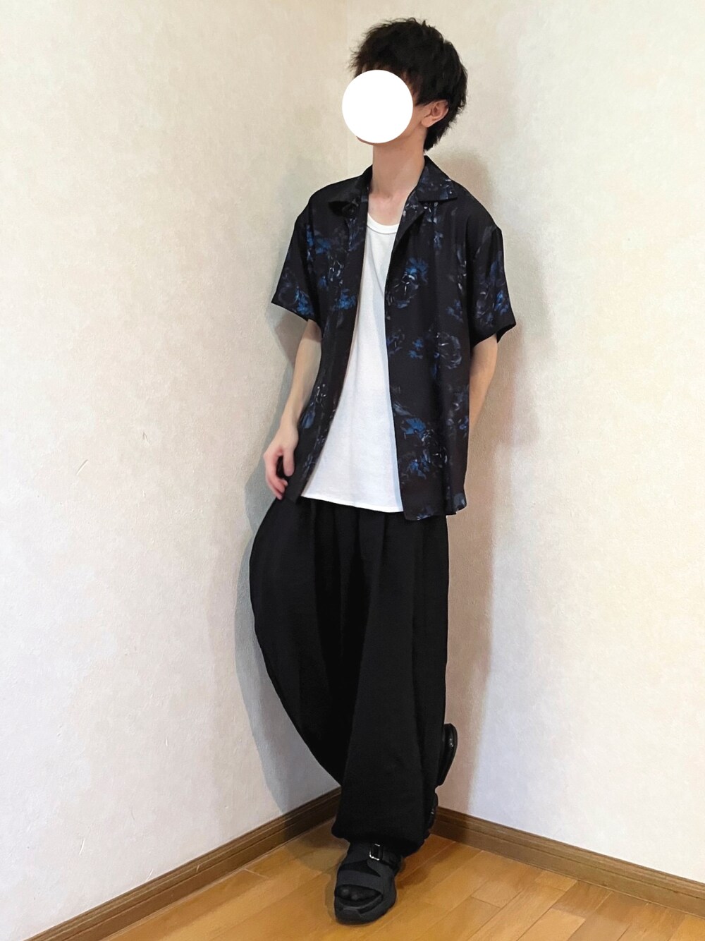 ー柄シャツコーデー そろそろ夏も終わっちゃうんで、夏コーデ1つだけ載せたいと思って撮ったやつです! おそらく今年1番お世話になったコーデがこれです笑