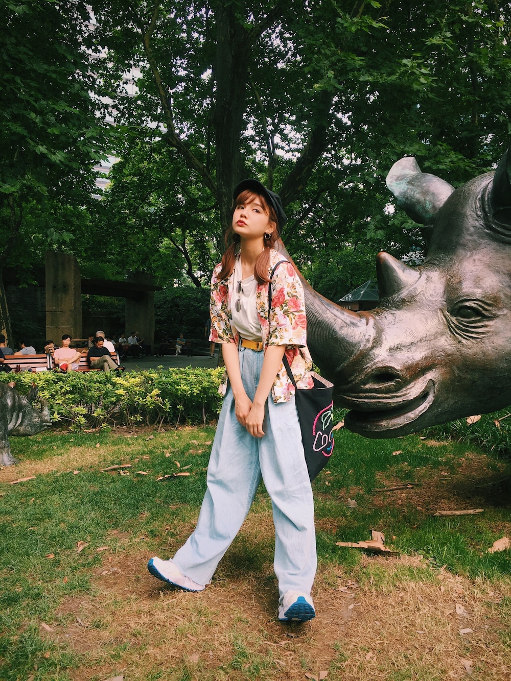 上海の旅1日目のコーデ(^^) usedのアロハシャツとゆるっとデニムでカジュアル〜〜。やはりデニムすきだなあ キャスケットは台湾の夜市で買ったものです。