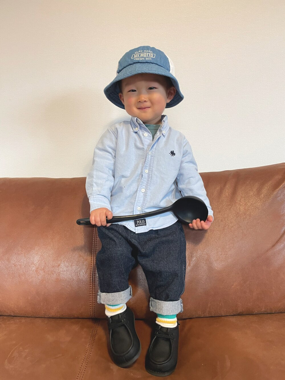 いつも 💬、➕、❤️、🗂𝙸𝙽 ありがとうございます𓅿𓅿𓅿 𓂃◌𓈒𓐍 最近立ってくれないので おたま持たせたら立ってくれた😂 今回は顔面ぶつけたりはしなかったです🤣 学習能力👏🏽www 𓅿𓅿𓅿 🧢と👖のデニム合わせ🤝💙 ロンTと🧦のターコイズ合わせ🤝💚 👞とおたまのブラック合わせ?🤝🖤😂 𓂃◌𓈒𓐍