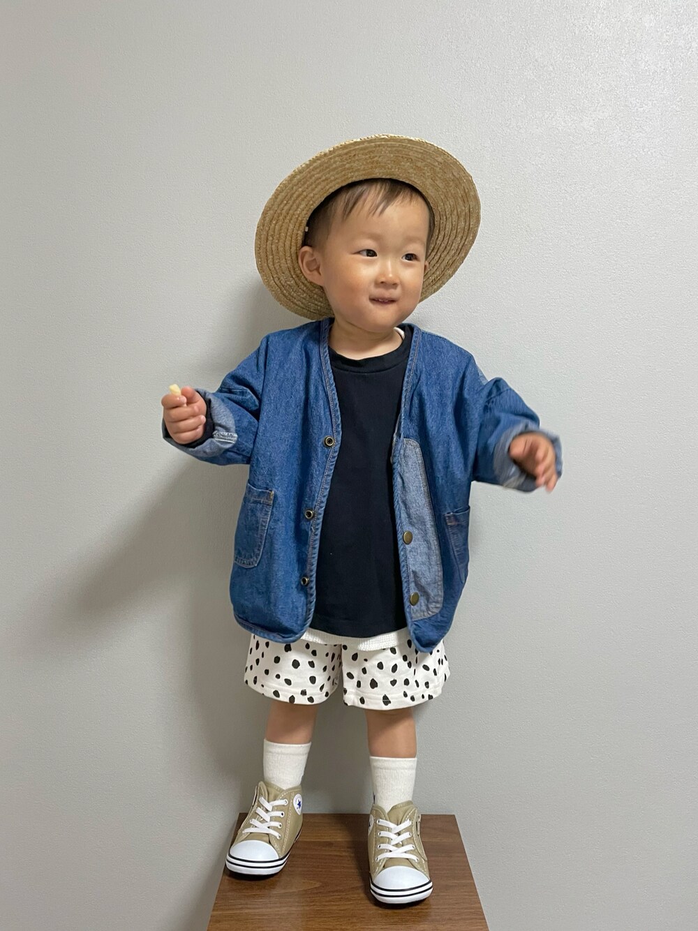 𓂃◌𓈒𓐍 🏷⸒⸒ #レイヤードスタイル ハーフパンツはBirthdayのmaninaの🐾 撮影のお供はかっぱえびせん🦐 5枚目は『おいし~ぃっ』の顔🤣 𓂃◌𓈒𓐍 oto ▶︎ 1y6m / 𝒃𝒐𝒚 / 81cm / 10kg いつも 💬、➕、❤️、🗂𝙸𝙽 ありがとうございます𓅿𓅿𓅿