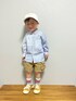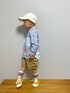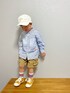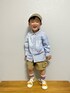 𓂃◌𓈒𓐍 ブルーとストライプの切り替えが可愛くて カラフルな文字も好きなシャツ🥰 ブルー×ベージュも好きな組み合わせで 足元はシャツのカラフルな文字に合わせて 色入れてみました~🌈🌈 𓂃◌𓈒𓐍 ご覧いただきありがとうございます𓆸⋆* ✮ 𝑂𝑇𝑂 ✮ ▷94cm ▶︎11.7kg ▷2y6m