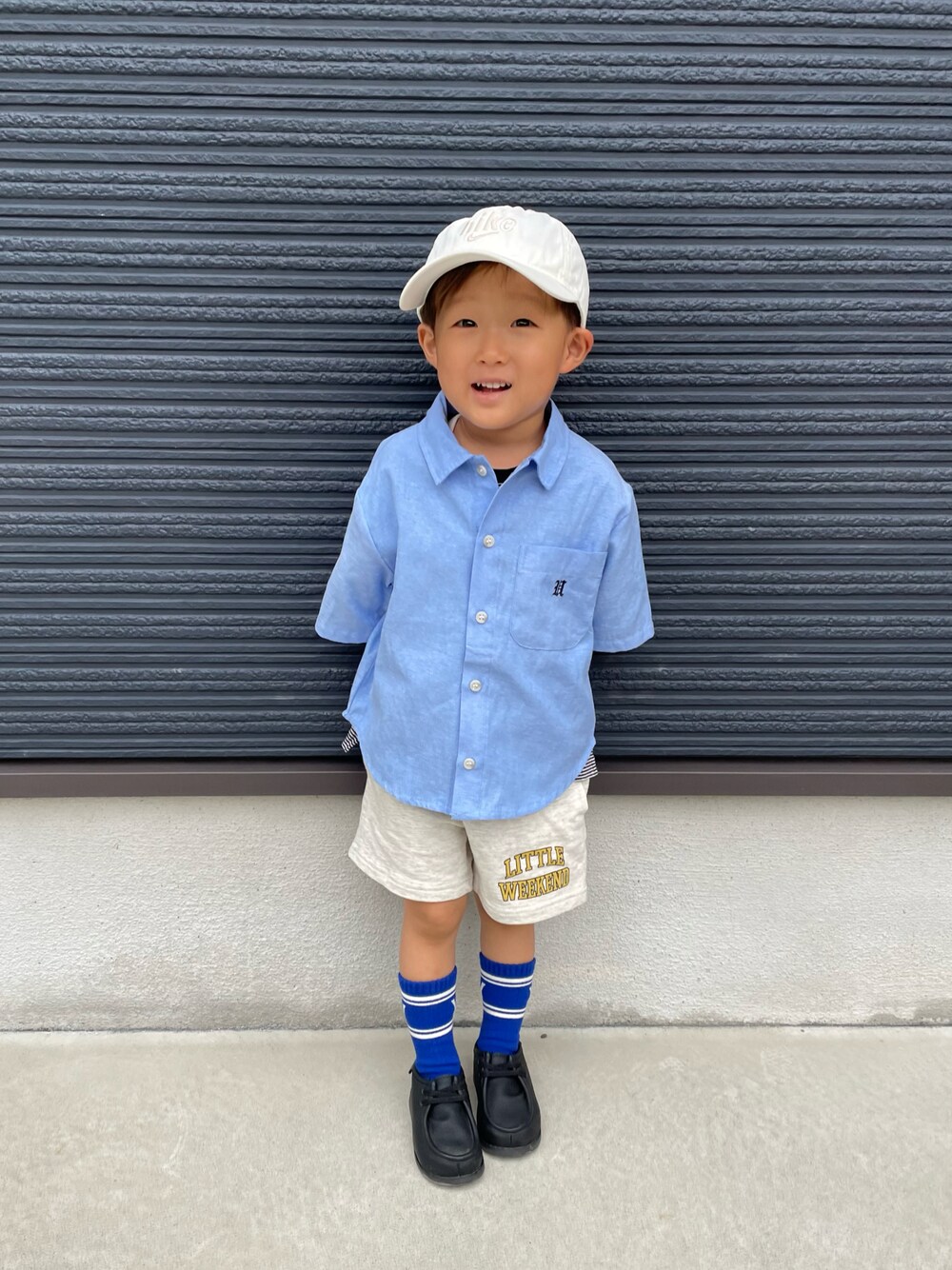 𓂃◌𓈒𓐍 最近、撮影してたらカメラに向かって 走ってきて▶︎バックしてを繰り返してて それが楽しいみたいでこの笑顔😂 きれいめカジュアルコーデ🩵🤍🖤 𓂃◌𓈒𓐍 ご覧いただきありがとうございます𓆸⋆* ✮ 𝑂𝑇𝑂 ✮ ▷94cm ▶︎12.8kg ▷2y8m (R5.4.14 測定⚖️)
