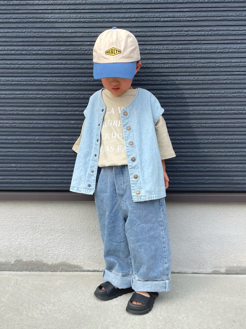 𓂃◌𓈒𓐍 デニムコーデ🩵💙 ゆるゆるシルエットが可愛い🤭❤️🔥 4枚目は足が痛かったそうで こんな顔なってました🤣🤣 𓂃◌𓈒𓐍 ご覧いただきありがとうございます𓆸⋆* ✮ 𝑂𝑇𝑂 ✮ ▷94cm ▶︎12.8kg ▷2y9m (R5.4.14 測定⚖️)