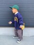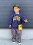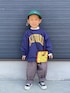 𓂃◌𓈒𓐍 ネイビー×ブラウン💙🤎 パンツのブラウンが思ったより 色褪せたブラウンだった🫣 形はとても良かった☺️ 最後座り込んでるのは 写真撮ってるママの真似~ だそうです😌笑 ────────── 👦 3y / 97cm / 13kg