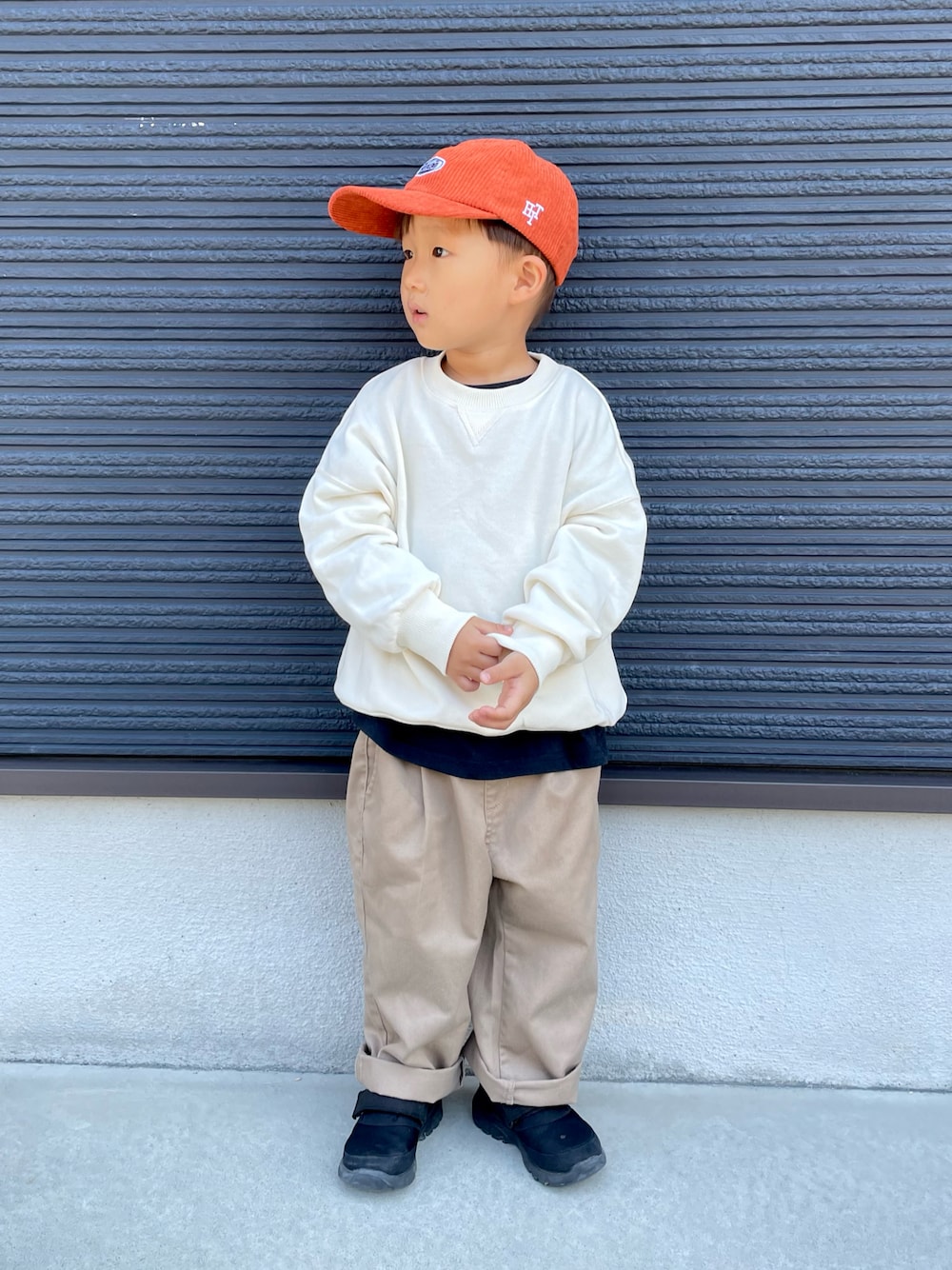 𓂃◌𓈒𓐍 シンプルコーデに オレンジ差し🍊 好きな感じになりました😘 11月もよろしくお願いします😌 ────────── 👦 3y / 97cm / 13kg