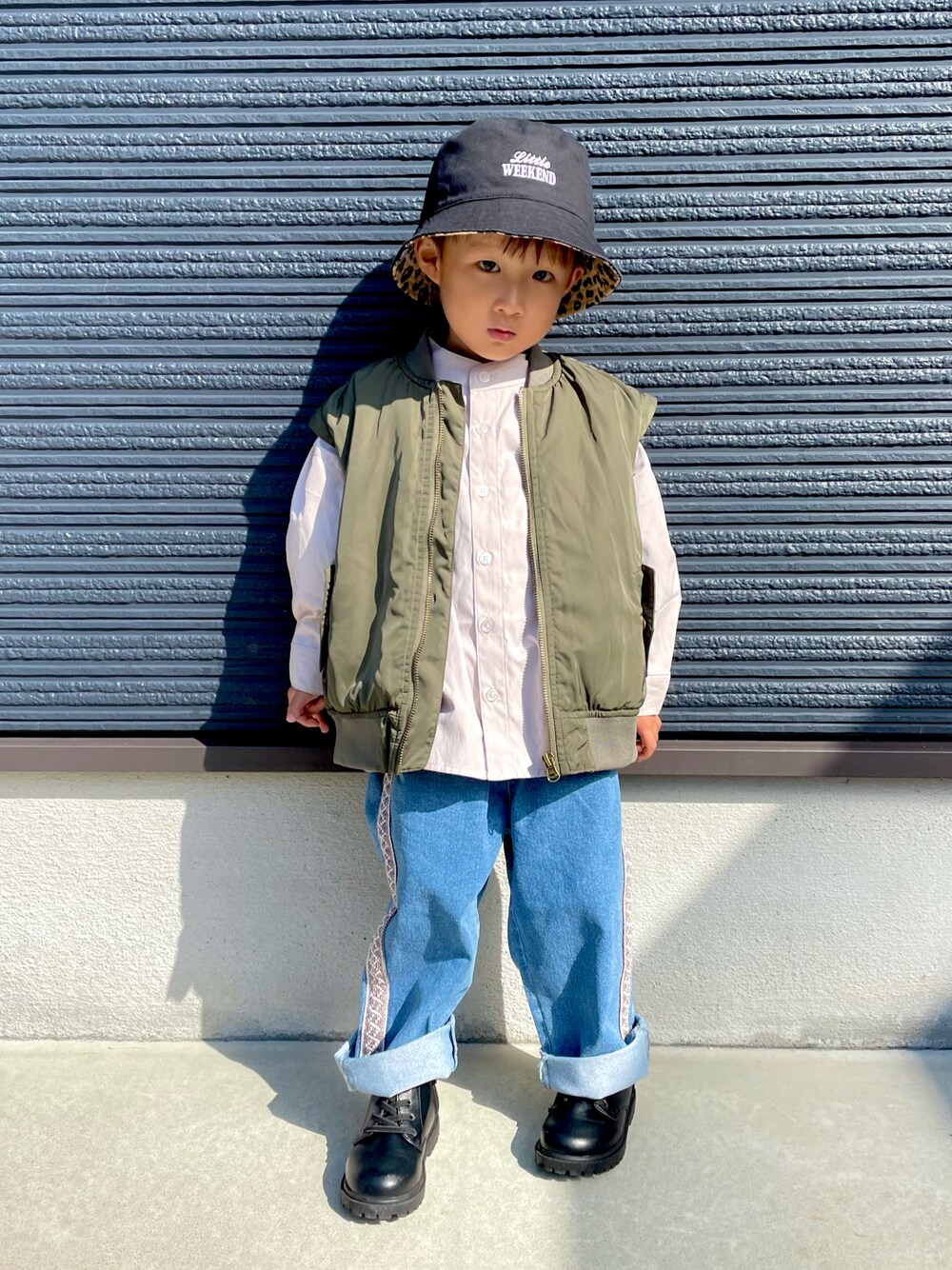𓂃◌𓈒𓐍 前に投稿したやつの MA-1ベスト着たver.🦖 ────────── 👦 3y / 97cm / 13kg