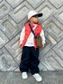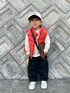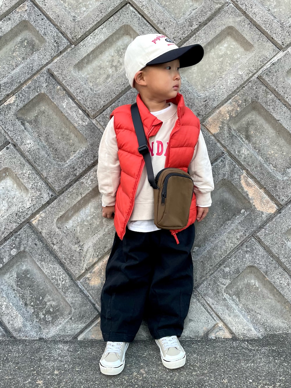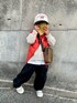 𓂃◌𓈒𓐍 ベスト着回し🍊 モノトーンに 赤のロゴが入ったアイテムを 合わせてみました🤗 ────────── 👦 3y / 97cm / 13kg