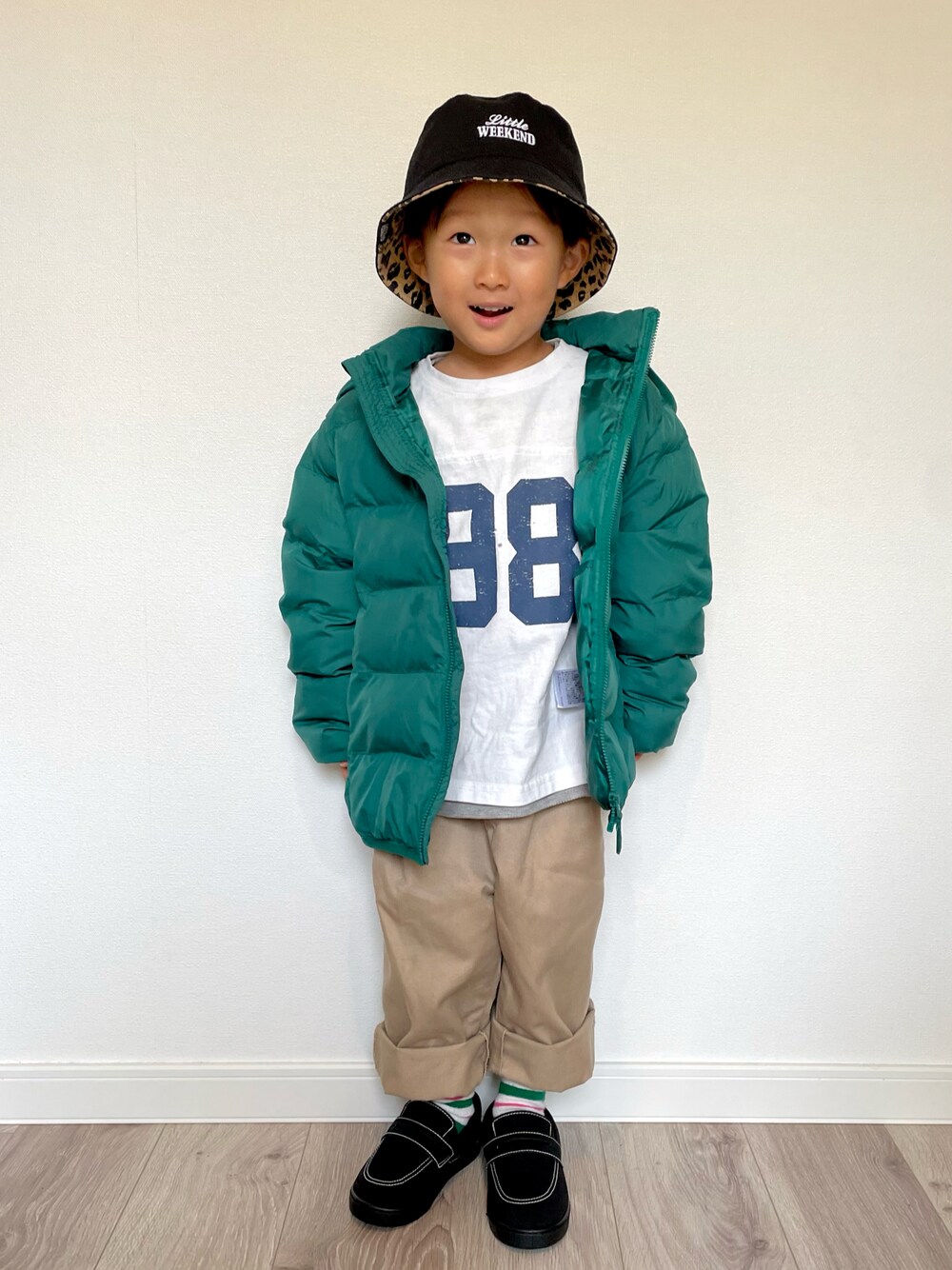 𓂃◌𓈒𓐍 UNIQLOの ウォッシャブルパーカ着回し💚 鮮やかなgreenが可愛い💚 洗えるので普段着にガンガン着てます😂 靴下見せたくてチノパンは 幅大きめで折りました😚 デビロックのスリッポンは撥水加工😳 しかもサイズ調整用にインソール2枚付き⋆☽ コスパ最強🥰 ────────── 👦 3y / 98cm / 13kg