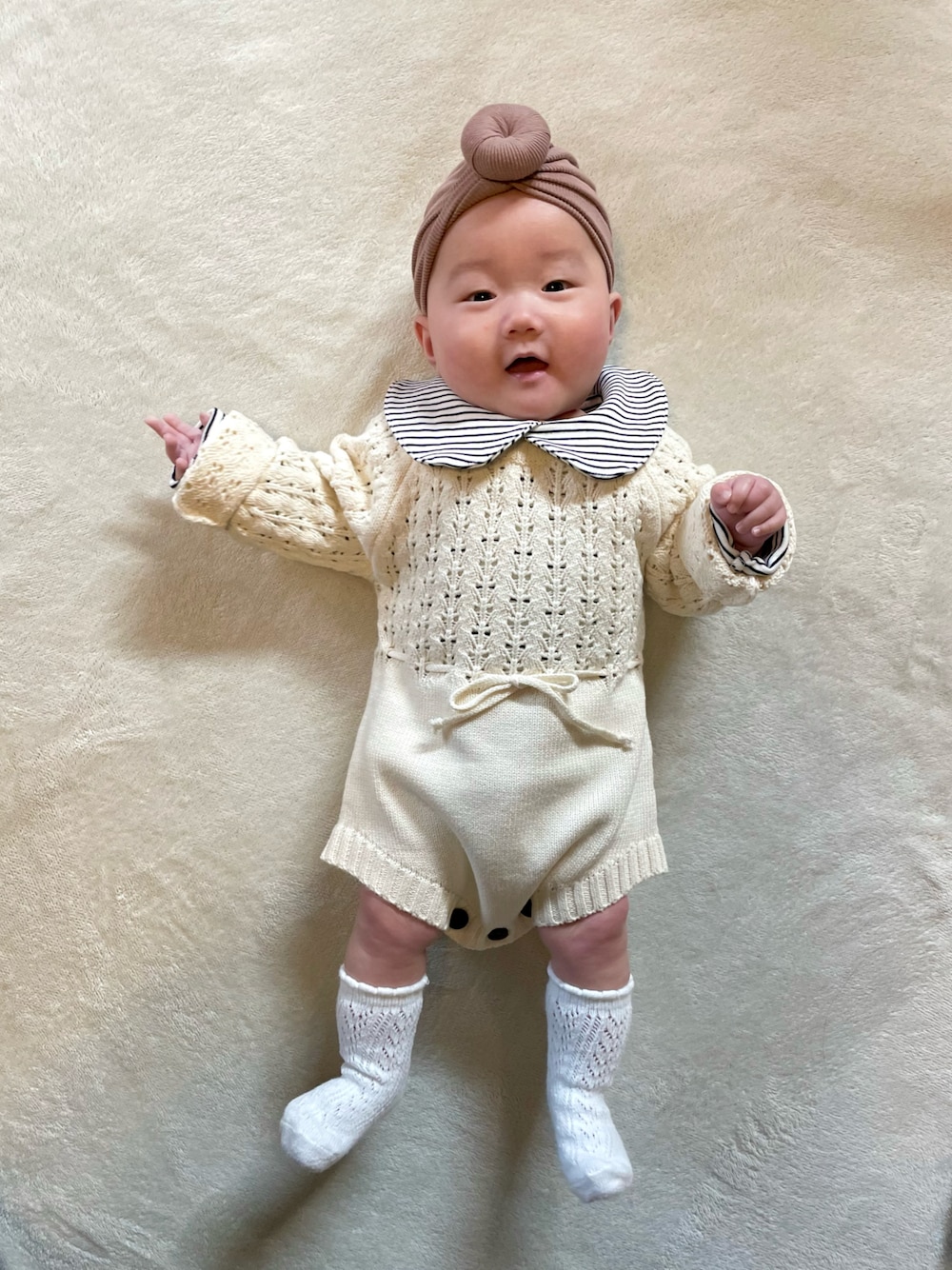𓂃◌𓈒𓐍 お久しぶりの妹🥰 もう5ヶ月🥺早い🥺 ホワイトコーデ♡ まだ少し大きいけど 袖2回折ってなんとか🥹 ────────── 👶🏻 0y5m / 66.5cm / 6600g