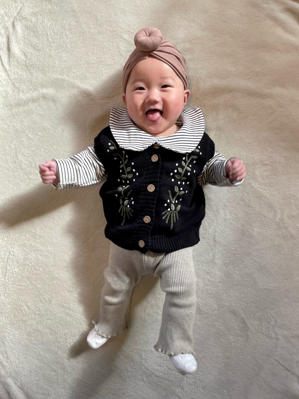 𓂃◌𓈒𓐍 久しぶりにSHEINで買ったのが 当たりすぎた🎯👏💕 生地もしっかりで何よりお安い🥹 口コミ見て買うの大事ね😂✨ ボンネットしたらおにぎりにしか見えない🤣🍙 ────────── 👶🏻 0y5m / 66.5cm / 6600g