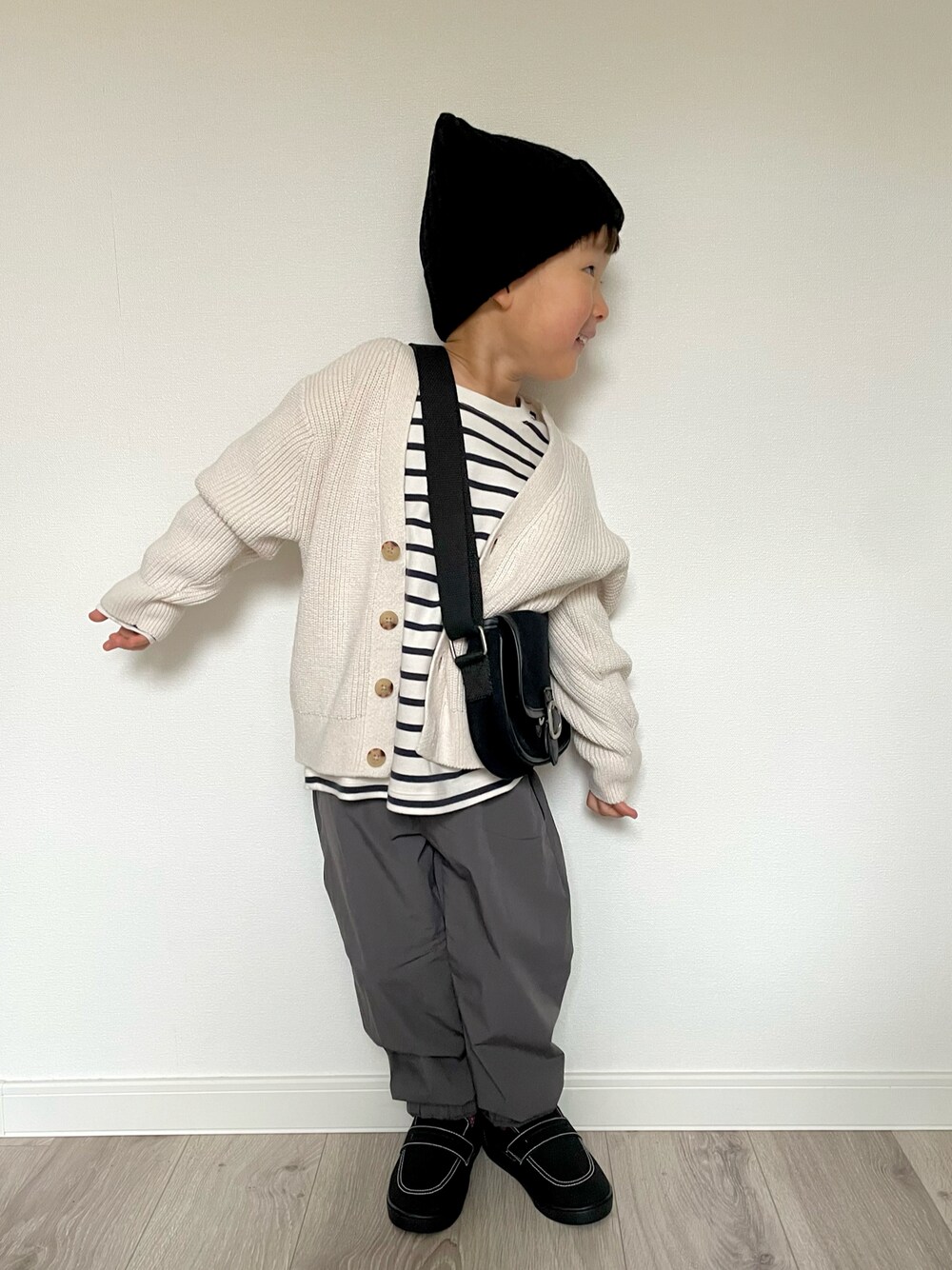 𓂃◌𓈒𓐍 全身UNIQLO🤍 きれいめカジュアル🤍🖤🩶 小物をブラックで合わせて大人っぽく🤭 ────────── 👦 3y / 99.5cm / 13.5kg