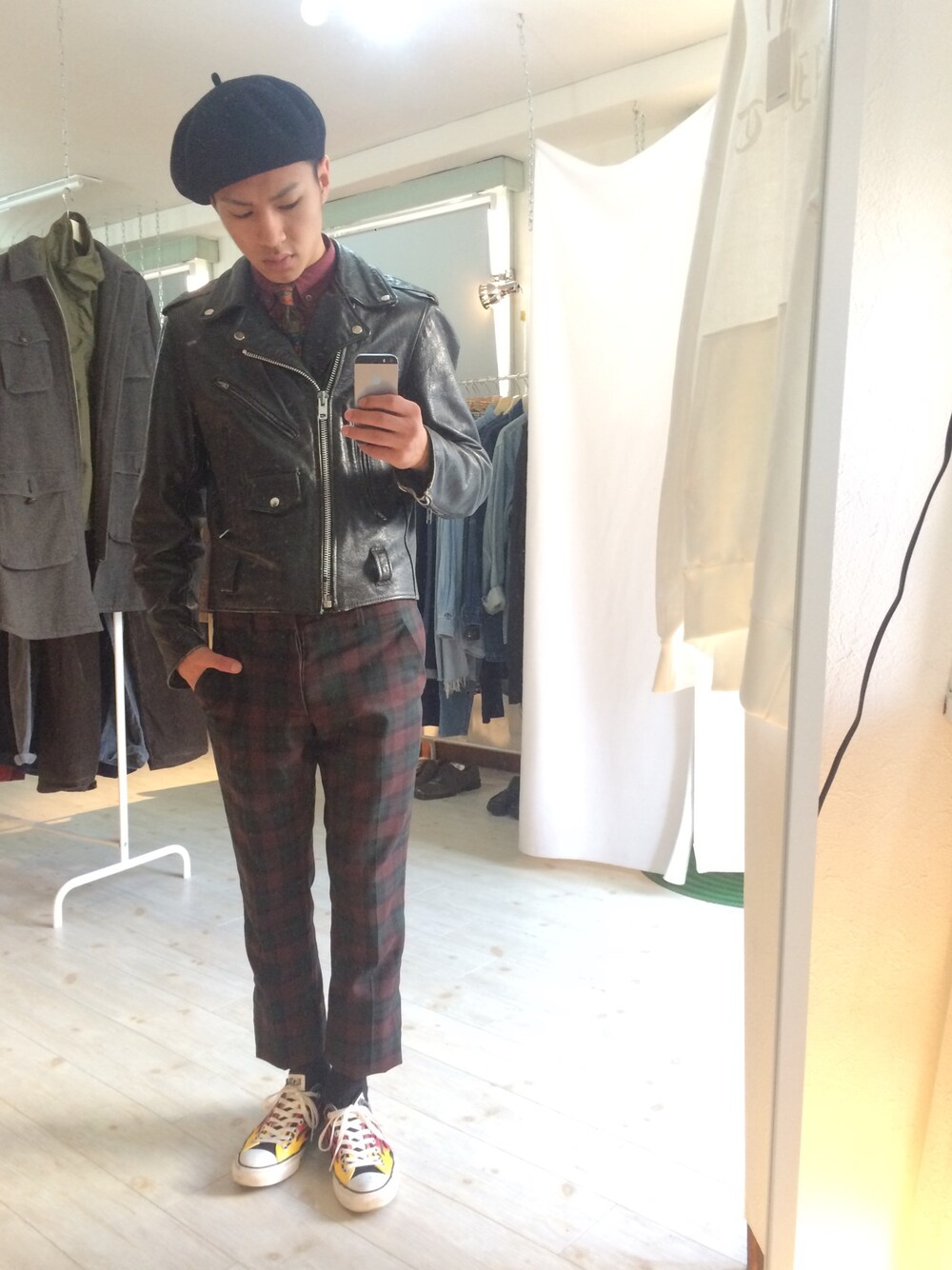 ブラック系のスニーカーを着用したメンズの秋コーディネートの1枚目の写真