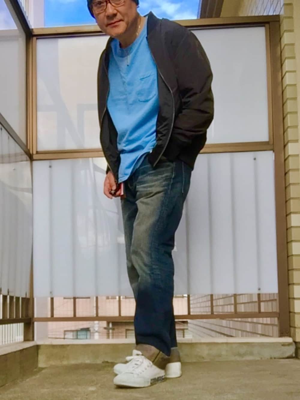ぺこりーの隊長64歳のMA-1「【M2squared】リバーシブルスーベニア×MA-1ジャケット」を使ったコーディネート