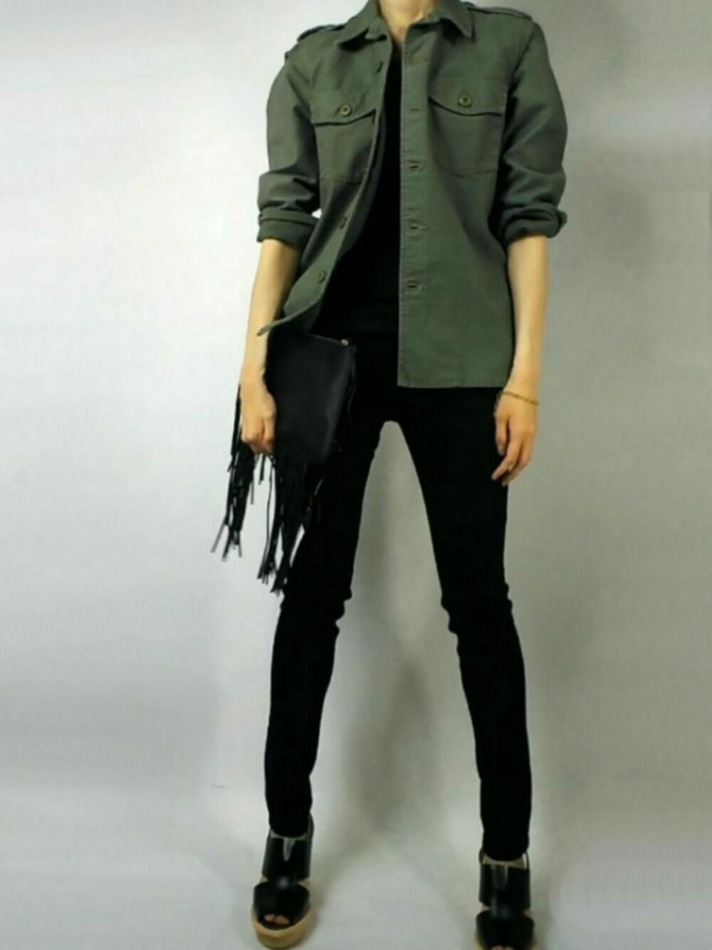 ミリタリーっぽく着てみました。カーキ×ブラックの組み合わせが好きです✨