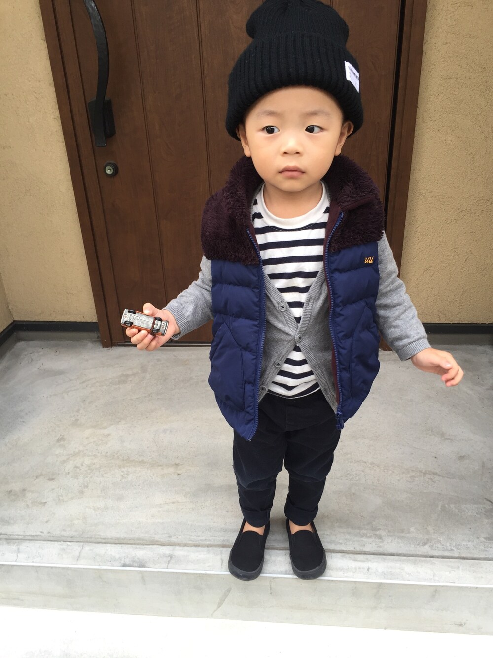 大阪も寒くなってきたぁ。 今日は手にトミカの40周年記念号のブルーバード持ってる〜〜 かーちゃんの影響でレトロな車すきー!