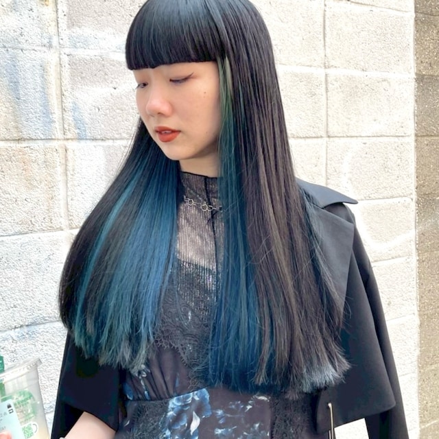 Instagram▶ @s__mtrk.blue '97|骨格ウェーブ×軽ナチュラル|前髪ぱっつん青みロング "凛"なモードスタイルを追求。