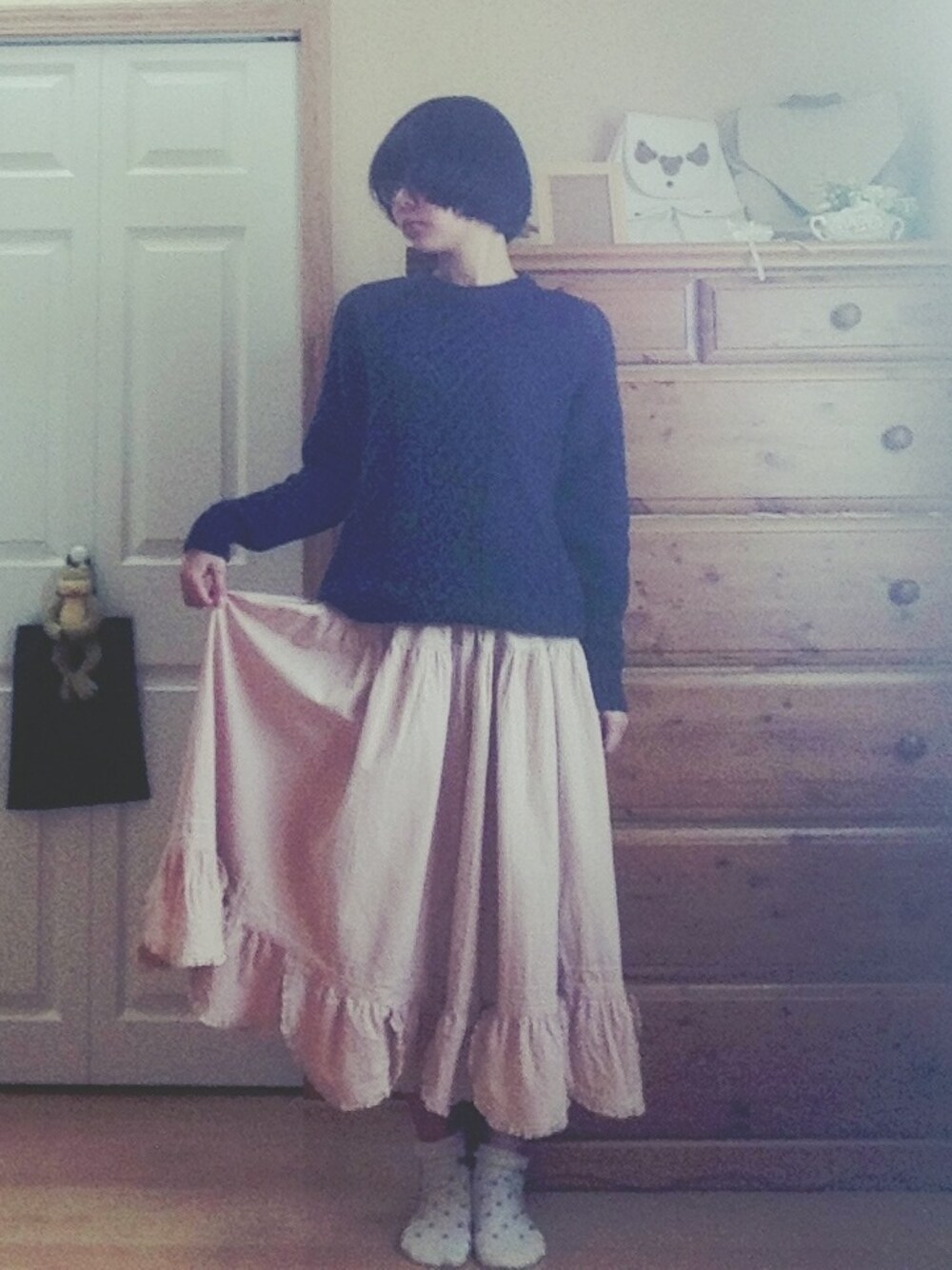 あけましておめでとうございます。 とても穏やかな朝。 今日はきっとおうちにいるだけ。 スカートは母からのおさがりです。 レース、ギャザー、少し特別な気分になれるスカート。 この服に袖を通したとき、 くるっとまわってスカートが空気を含んだとき、 女の子に生まれて良かったと思いました。