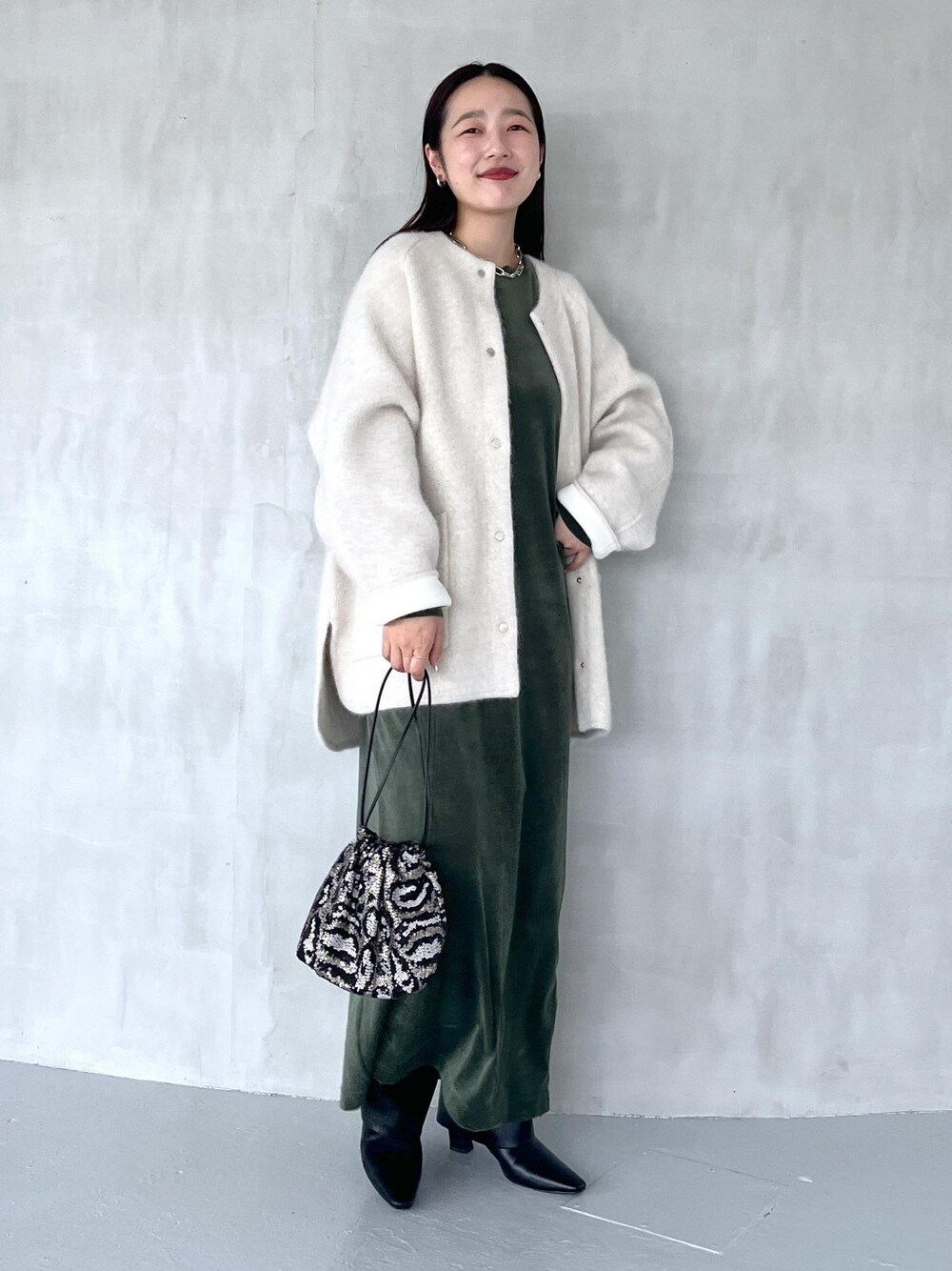 muta0629(ADAM ET ROPE' ルクア大阪 FEMME)のワンピース「【ADAM ET ROPE'】 ベロア BOTANICAL DYED DRESS」を使ったコーディネート