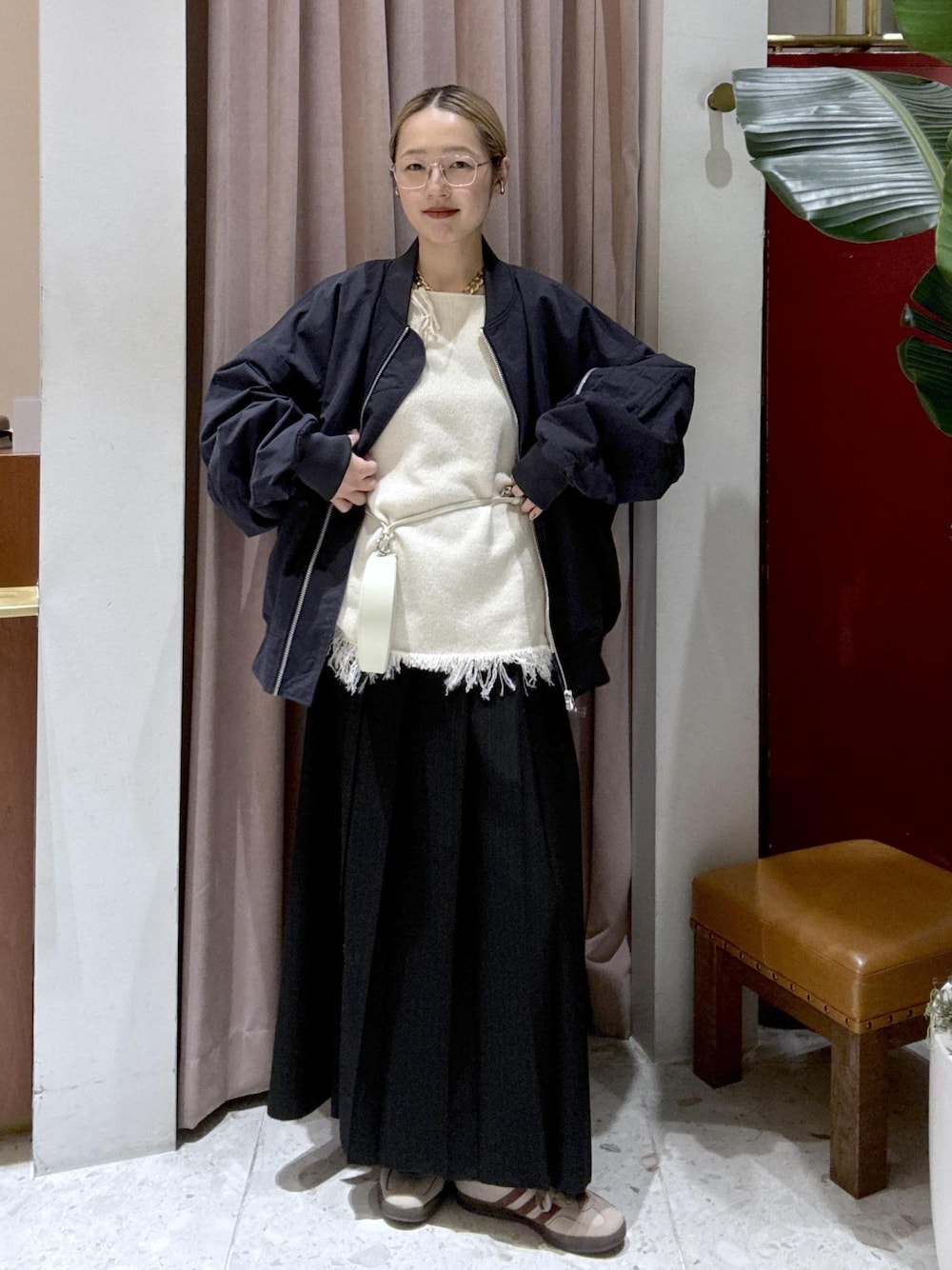 いつもご覧いただきありがとうございます♪ 本日は、PROVOKE の別注MA-1を主役にした大人カジュアルスタイルのご紹介です。 ボリュームのあるMA-1に、 落ち感のあるロングスカートを合わせて、バランスよくまとめました。 インナーには表情のある素材を取り入れ、 重くなりすぎないよう、程よく抜け感をプラス。 今すぐ着られて、春先まで活躍するスタイリングです♪ ぜひ店頭やオンラインサイトにてご覧くださいませ。