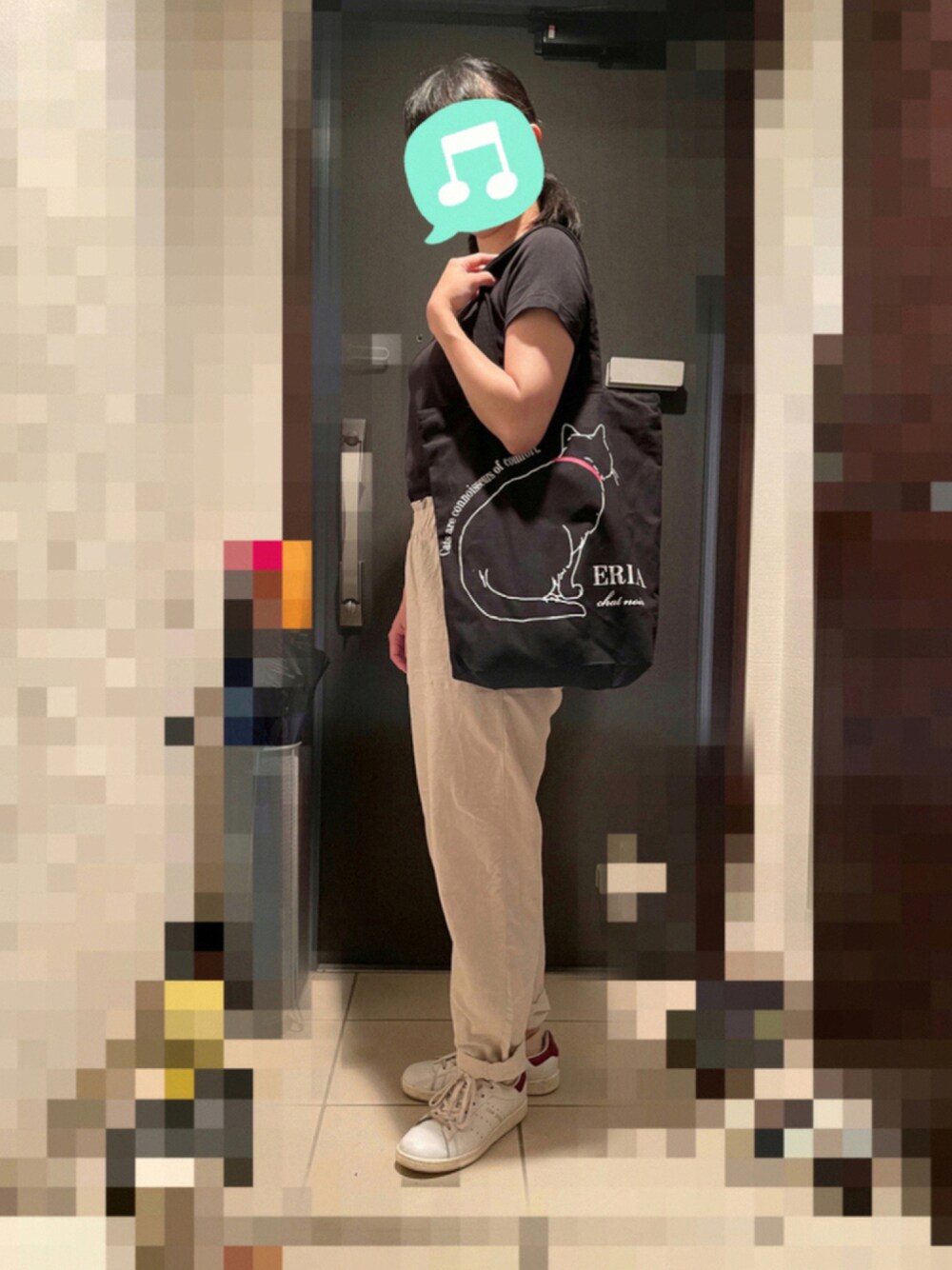 見てくださりありがとうございます☆ 今回はモノトーンのワンマイルコーデです! このトートバッグ、猫柄が可愛くて思わず衝動買いしちゃいました🐱 なのでそれ以外はシンプルに。 今季大活躍のGAPのパンツですが、トップスはやっぱりインした方がスッキリ見えますね。