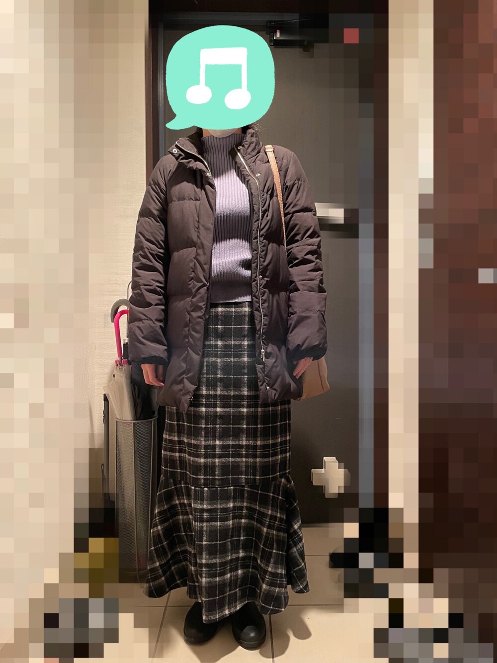 見ていただきありがとうございます☆ 今回は、寒の戻りコーデです! この日は前日より-10℃、雨も降っていて寒かったです。 用事があったのに寝坊してしまい、慌てて選んだらアウター失敗。 流石にダウンは暑かったです💦 このINGNIのトップスとスカートは、お正月セールで2点3000円でゲットしました✌️ 4月なのに完全に真冬の装備になってしまいました😱