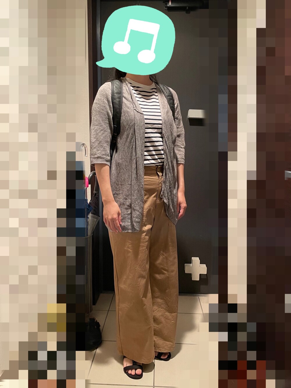 見ていただきありがとうございます☆ 今回は、リラックスコーデです! だいぶ前ですが、この日は晴れて気温が27℃ぐらい。 昼間だけの用事だったので、Tシャツに半端丈?のカーディガンを軽く羽織りました。 たくさん歩く日でもなかったのでサンダルに。この日が今年のサンダル最終日になりました。