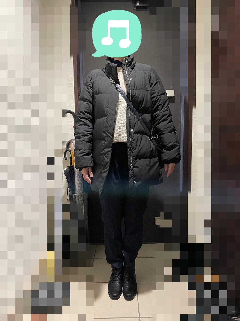 見ていただきありがとうございます☆ 今回は、試着用コーデです! この日は晴れて最高気温9℃、強風でした。昼から夕方にかけて外出。 ずっと狙っていた服(ジャンスカ)を試着するために、トップスに厚手のニットと下にブラウスを選びました。 流石にニットはインできませんでしたが、ジャンスカの上からなら合いました! ボトムスは黒のタイツを履いてからネイビーのパンツに。 アウターは白系にしようと思ったのですが寒すぎて黒のダウンになり、ニット以外が暗くなりすぎてしまいました💦