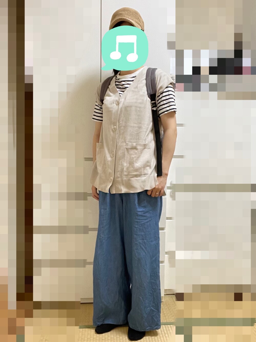 見ていただきありがとうございます☆ この日は昼過ぎから夕方まで出かけました。 久々のボーダーとワイドパンツでボーイッシュに。 リュックで背中が暑かったです💦