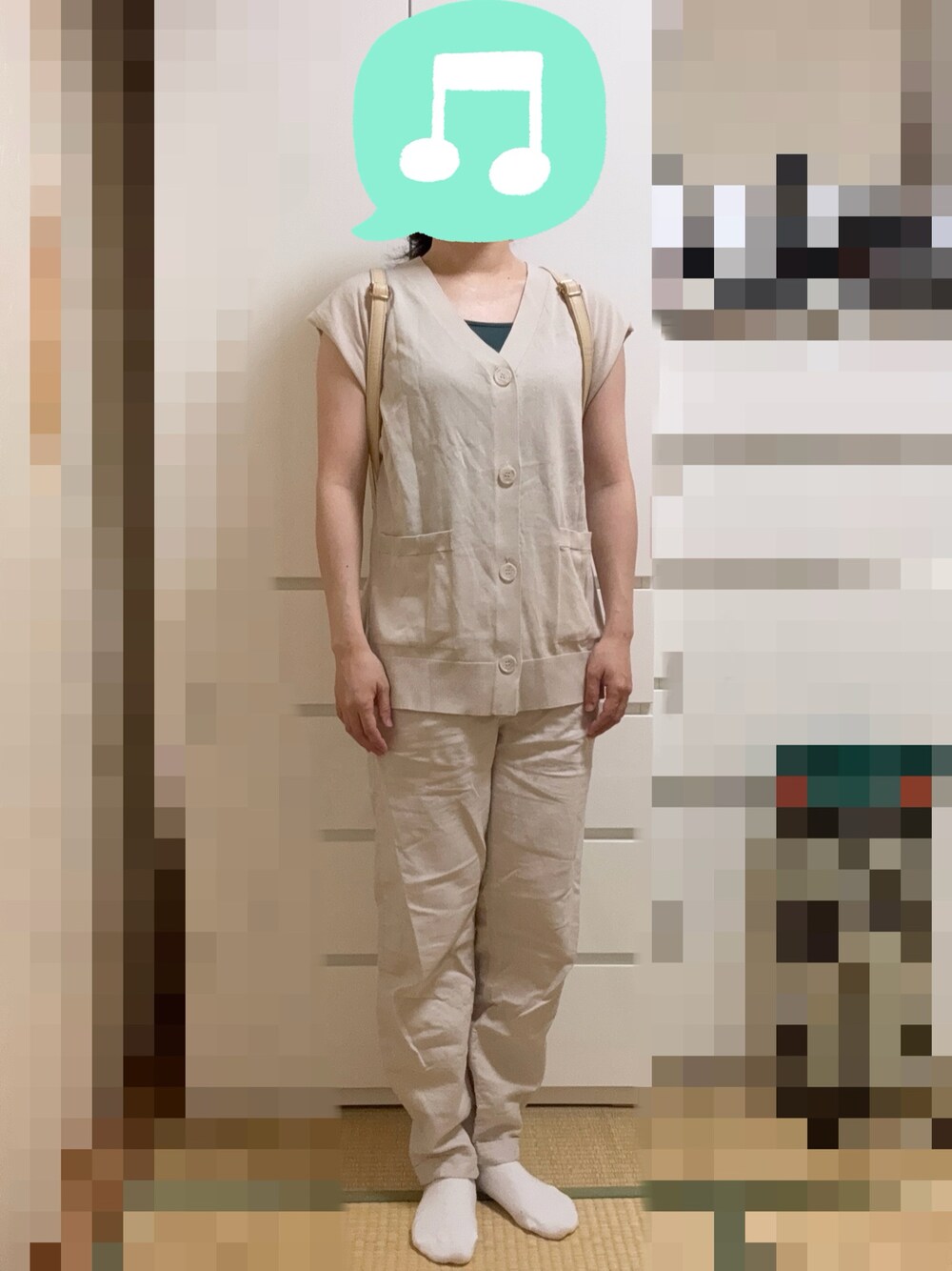 見ていただきありがとうございます☆ この日は午前中から昼前まで出かけました。 縦ラインを意識した淡色コーデ。 グリーンの面積もう少し増やしても良かったかも💦