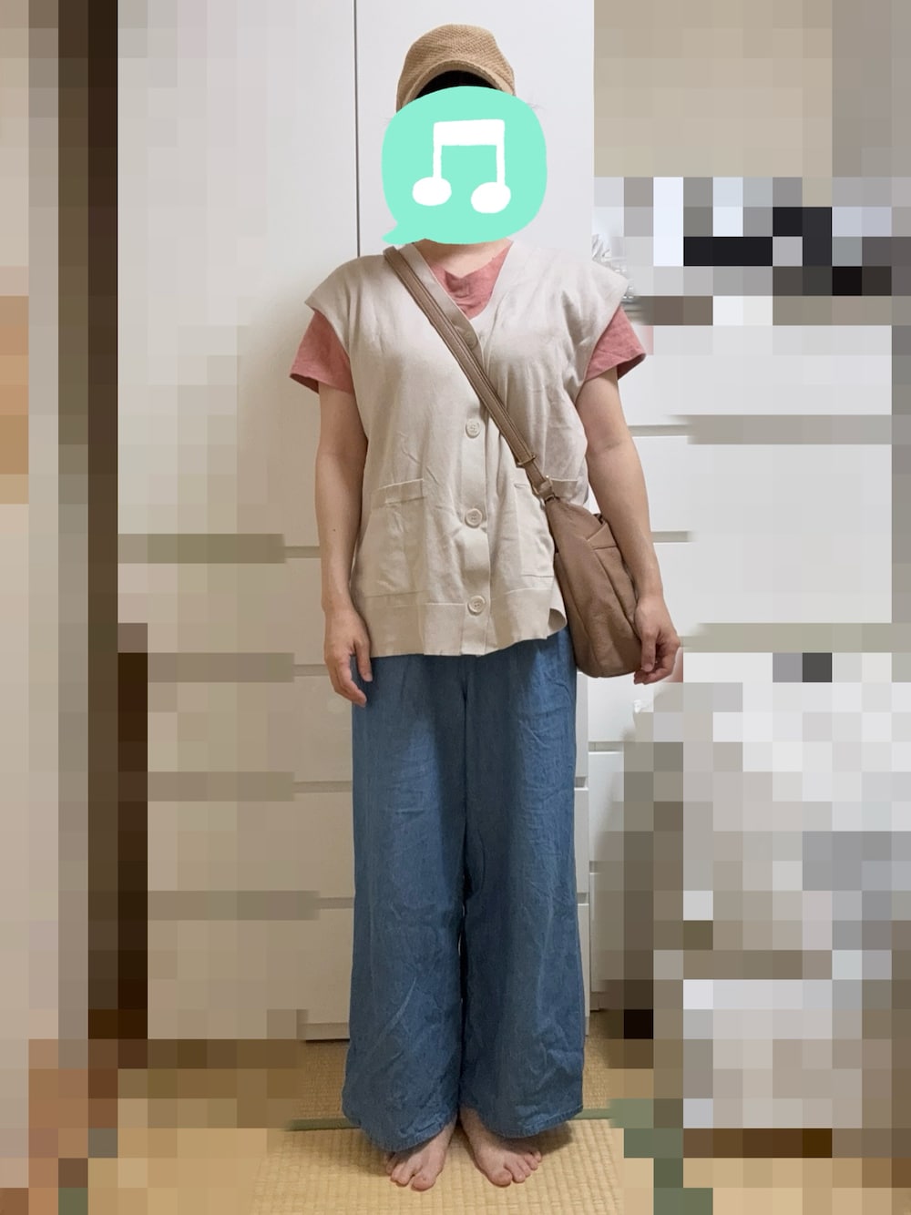 見ていただきありがとうございます☆ この日は午後から夕方まで出かけました。 昨日に引き続きカジュアルコーデ。 このベストとTシャツの袖のバランスが難しい💦