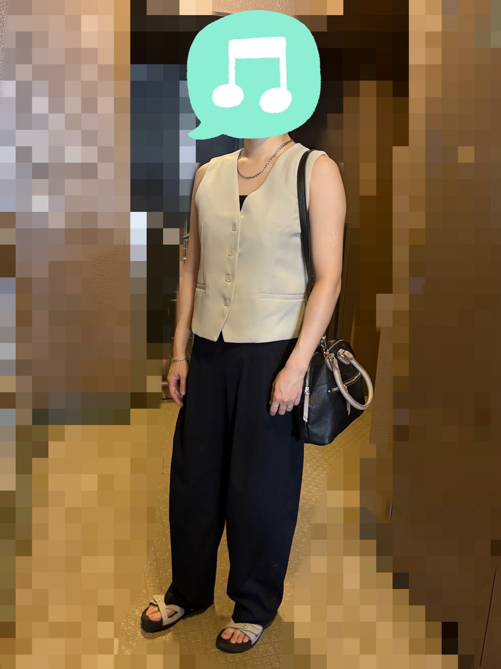見ていただきありがとうございます☆ この日は昼前から午後まで出かけました。 やっと着れたベストを使った綺麗めモノトーンコーデ。