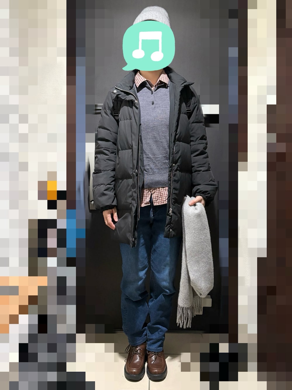 見ていただきありがとうございます☆ この日は午後から夕方まで出かけました。 やってみたかった襟付きニット&シャツの重ね着に挑戦! 自転車なのでニット帽とマフラーで防寒しました🧣