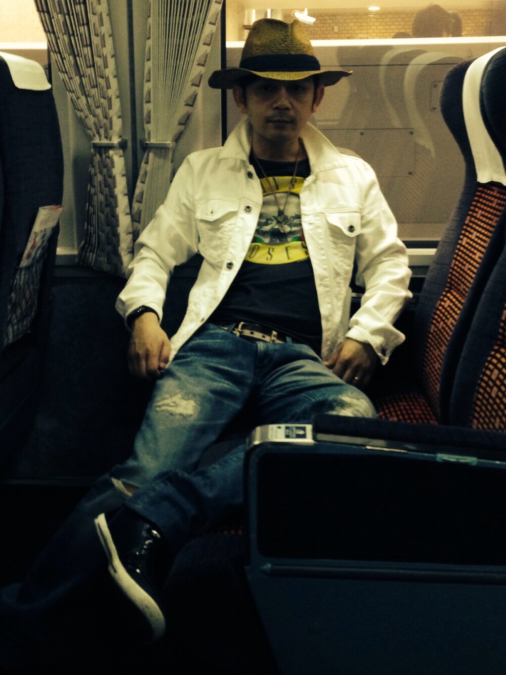 うちのダンナ。ロマンスカーにて。