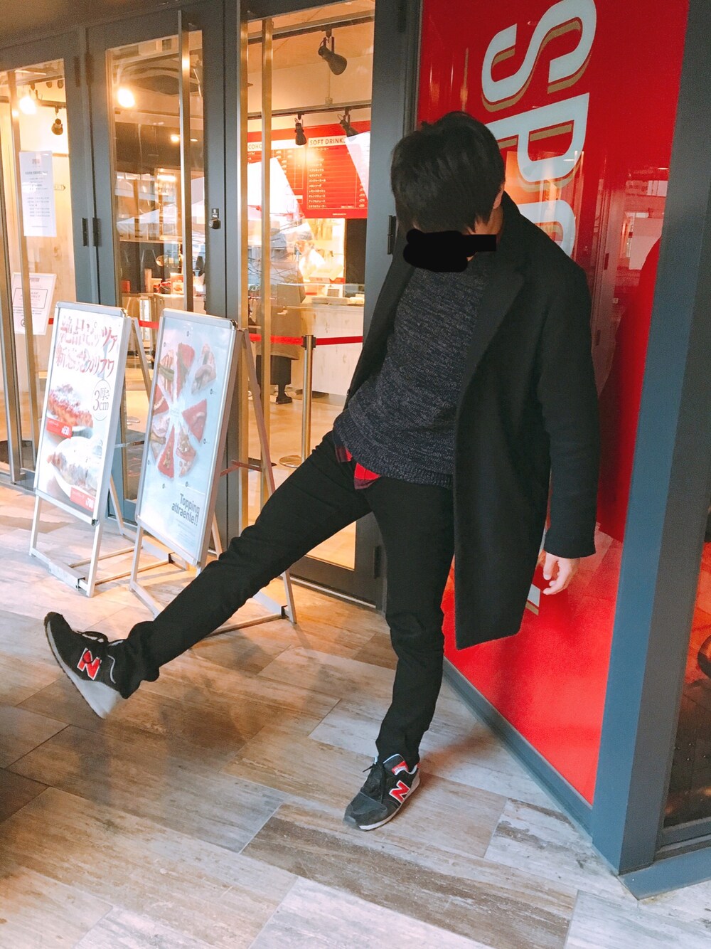 暗めな色を使って大人っぽく。ワンポイントとして赤のシャツを着てみました