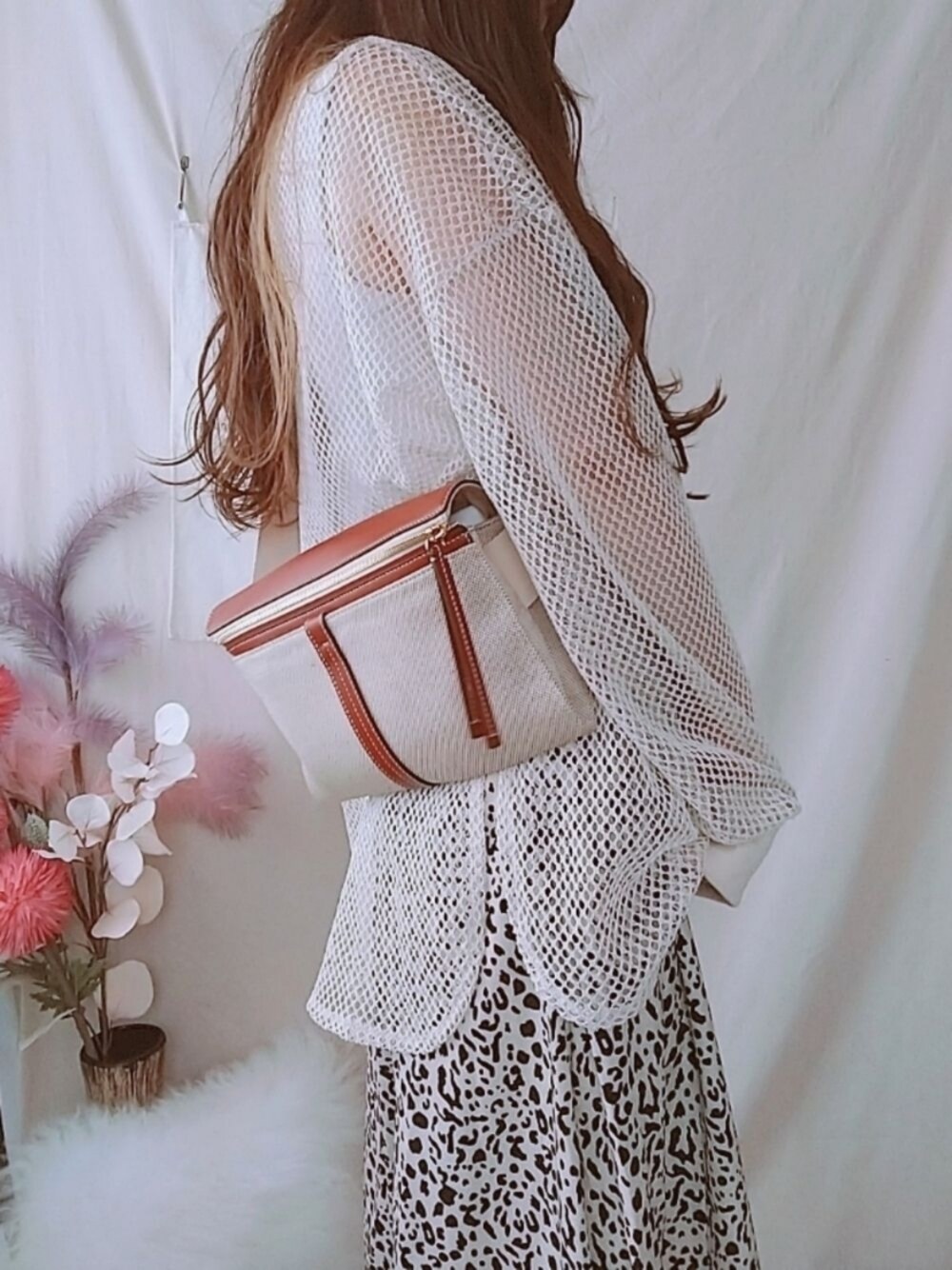 メッシュトップス レオパードガラロングスカート chloeのバッグで ベージュコーデ♡