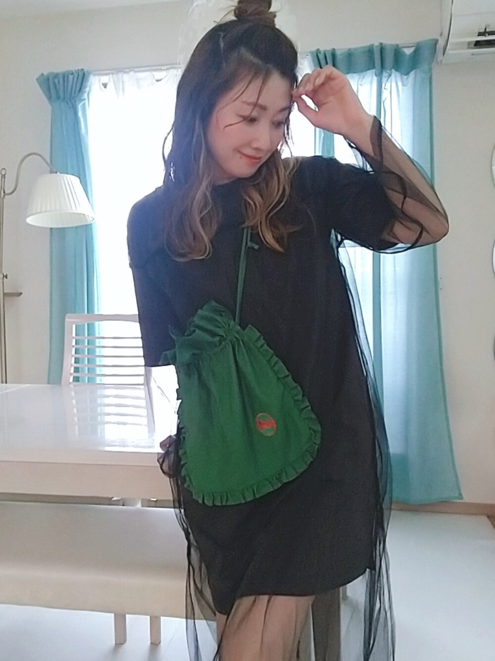 オーバーサイズのワンピース♡ シアーワンピースとセットでした🥰 ラッフルポシェットもお気に入り♡