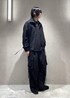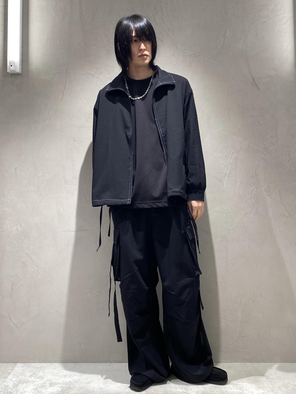 サイドコードスタンドZIPブルゾンとドレープパラシュートカーゴパンツを合わせたセットアップコーデ。 ブルゾンはビッグシルエット、丈短め。 さらっとした生地で肌触りが良く春の羽織に使いやすいです。 パンツはワイドシルエット、丈長め。 ブルゾンと同様さらっとした生地で肌触りが良く風通しが良いです。 身長180cm 着用サイズ L ※商品カラーはECサイトをご覧下さい。