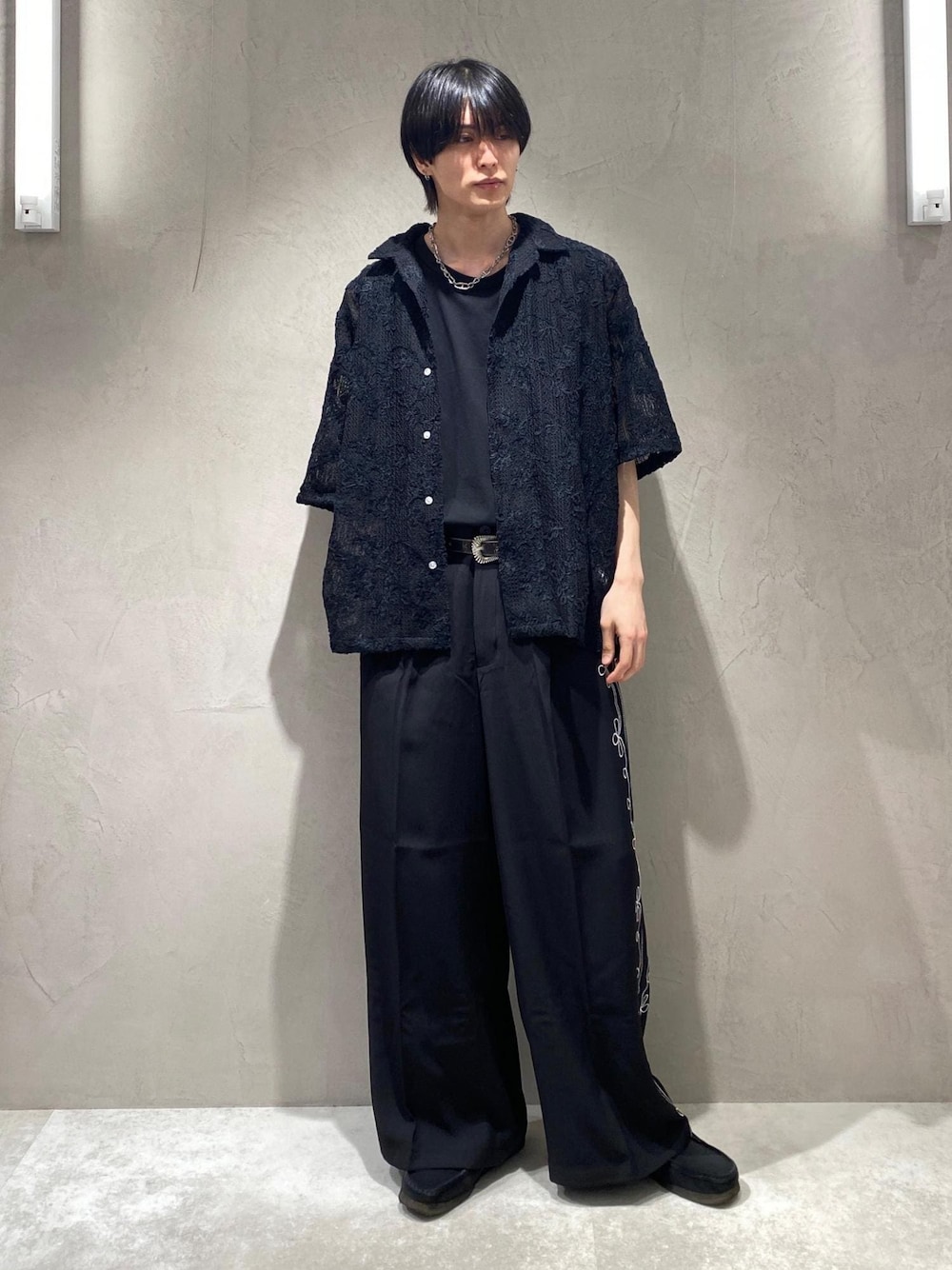 モールシアーシャツを使った綺麗めカジュアルコーデ。 シャツはやや透け感があり薄手の生地なので涼しく着用いただけます。 刺繍パンツを合わせると清潔感のある印象になります。 身長180cm、Lサイズ着用。 ※商品カラーはECサイトをご覧下さい。