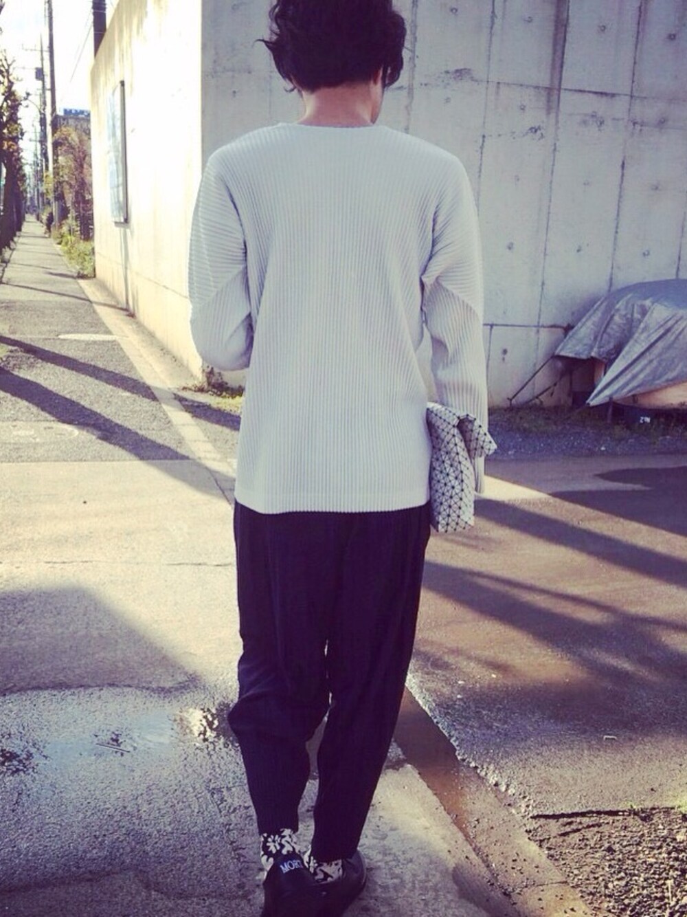 tops : ISSEY MIYAKE HOMME PLISSÉ bottoms : ISSEY MIYAKE HOMME PLISSÉ Shoes : MORT PARIS bag : BAO BAO ISSEY MIYAKE 通気性、デザイン性、耐久性ともに言うことなしです。