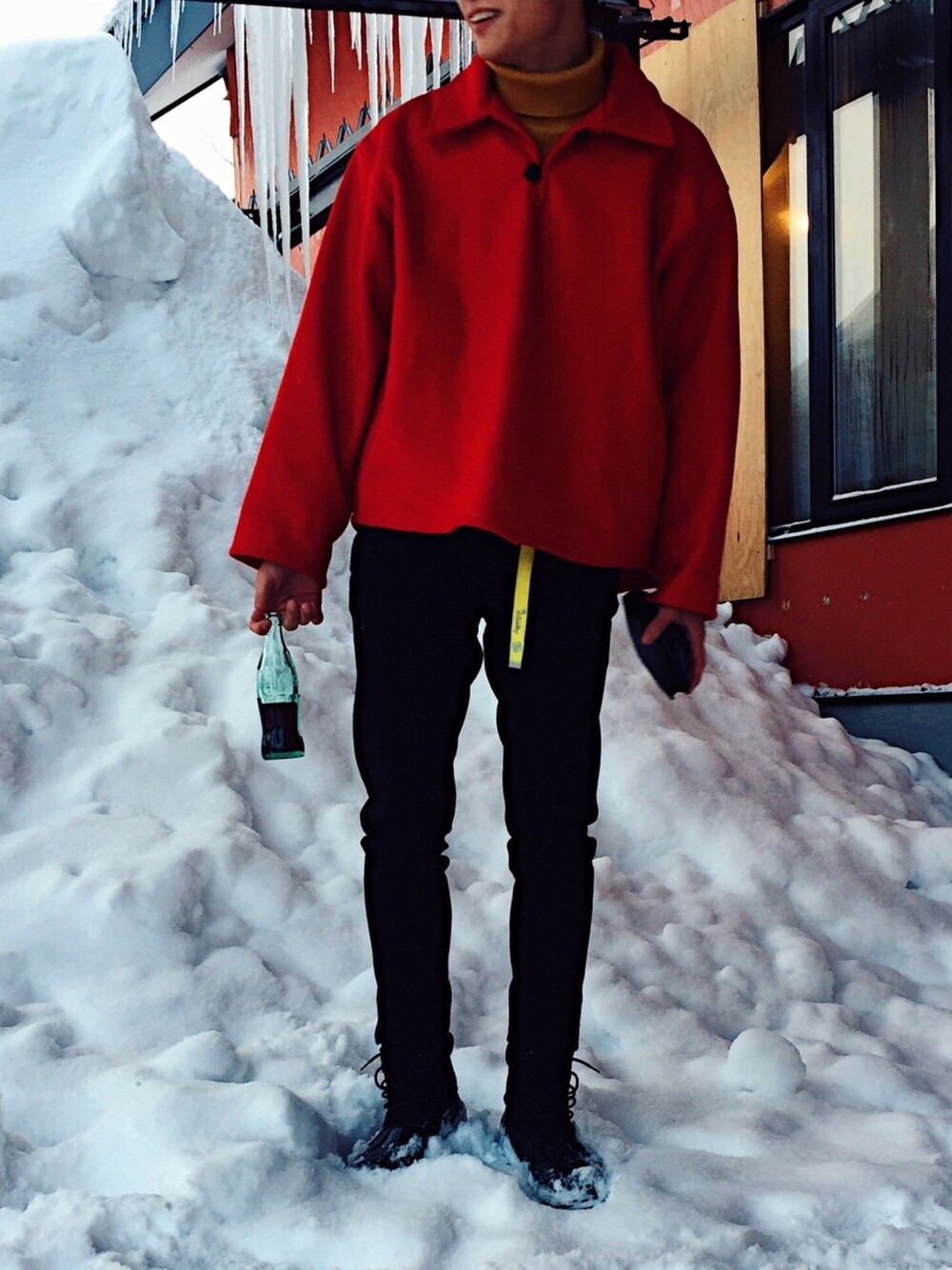 雪国・北海道 tops : RISIN' TOP (US VGNTAGE WEAR) knit : TOMORROWLAND tricot pants : KNOTT shoes : tomo & co × Name. cap : stussy