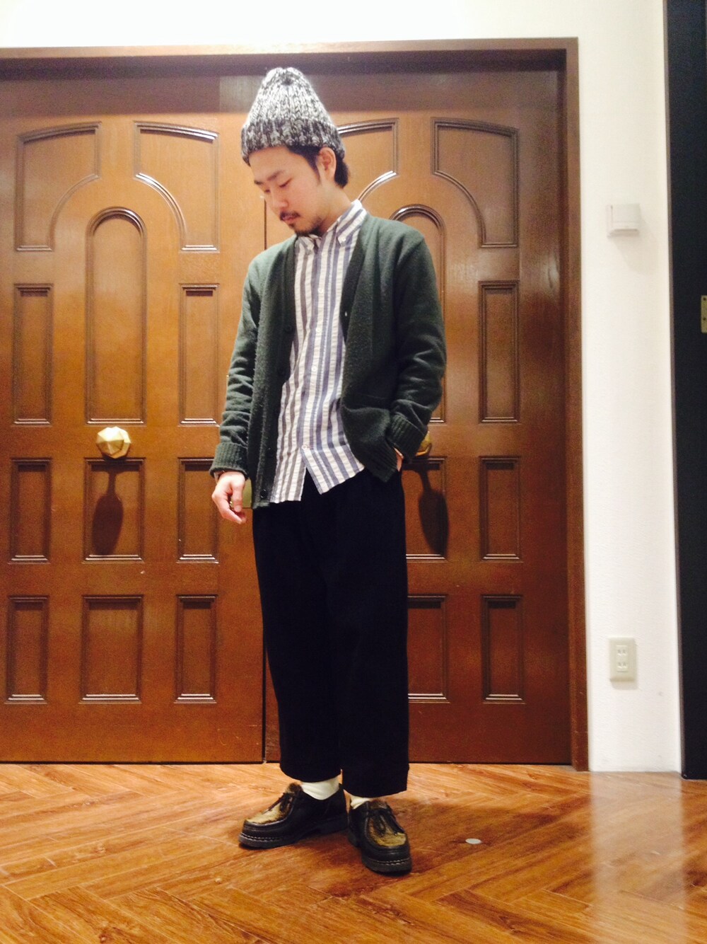 おじいちゃんみたい、、、笑 パンツお気に入りです! 帽子 HIGHLAND 2000 シャツ ciname ニット comono reproducts パンツ BASIS BROEK シューズ Paraboot