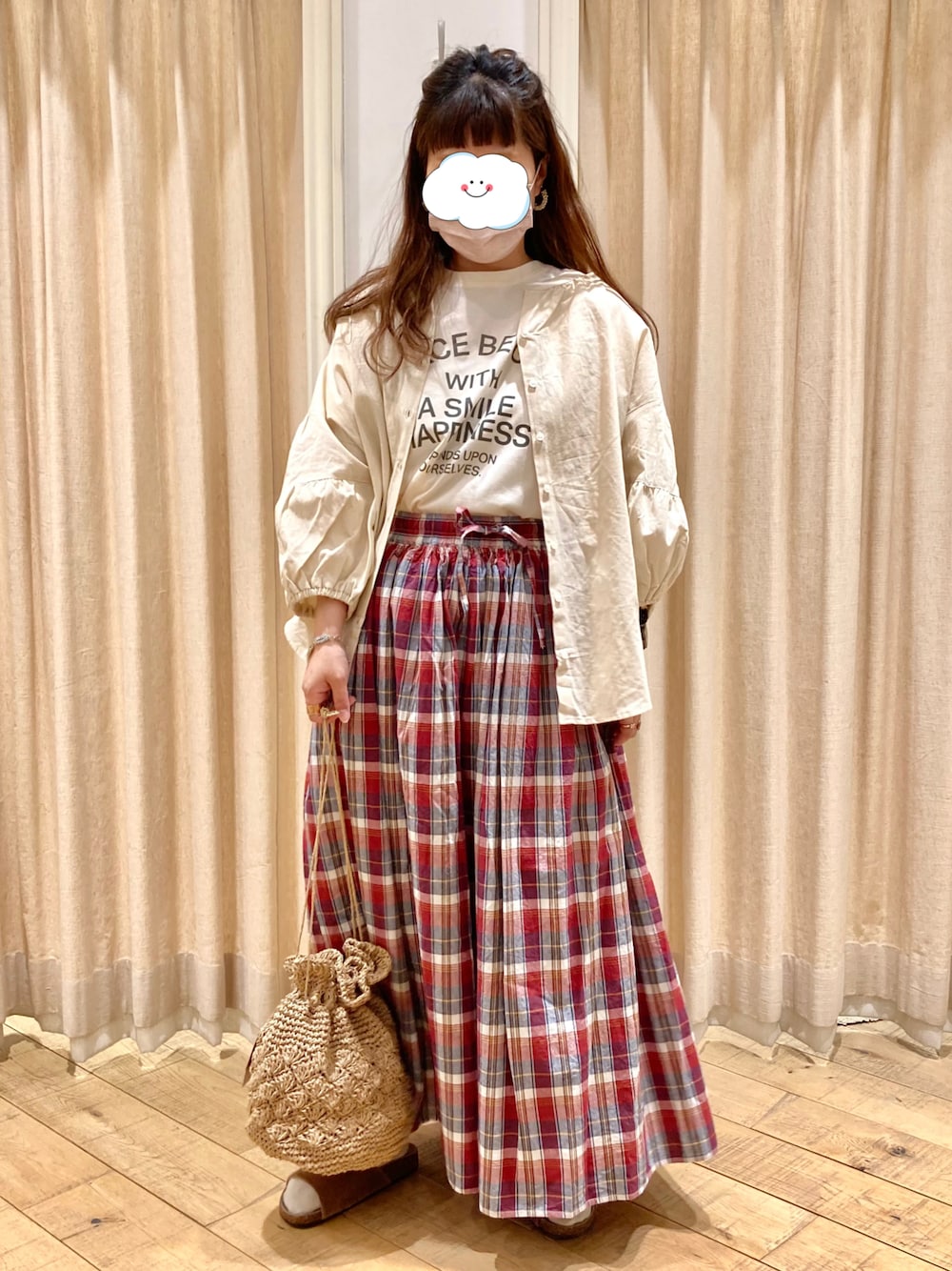 ご覧頂きありがとうございます😊 赤のチェックロングスカートを主役に ロゴTでカジュアルに🍎 ランタンスリーブのブラウスは前開きで 羽織にも使えて便利です♡ 只今MIDORI松本店では 新作商品続々入荷中です! 期間限定価格のアイテムも多数ご用意しております! お値下げ商品は最大50%offと大変お買い得です✨😌✨ ぜひ店頭でお手に取ってご覧ください♡♡♡ ✼••┈┈┈┈••✼••┈┈┈┈••✼ SM2 MIDORI松本店スタッフ 🧺ひかる @rccv 🧺monami @ymmmmmmooo 🧺Fuka @meuchaniii