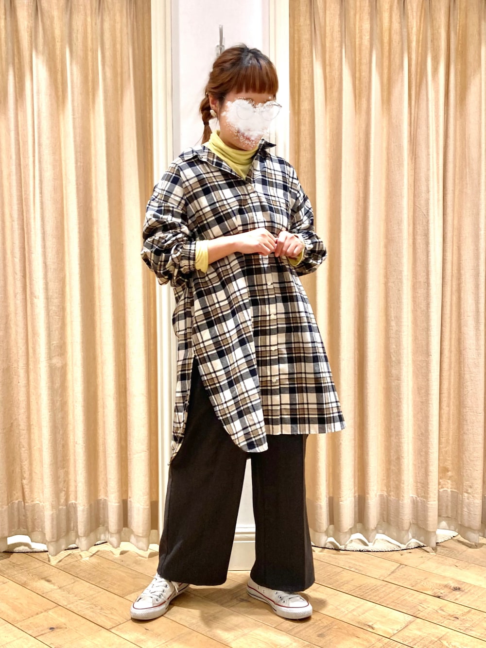 muttyのチュニック「【保温加工】柄アソートちび襟シャツチュニック」を使ったコーディネート