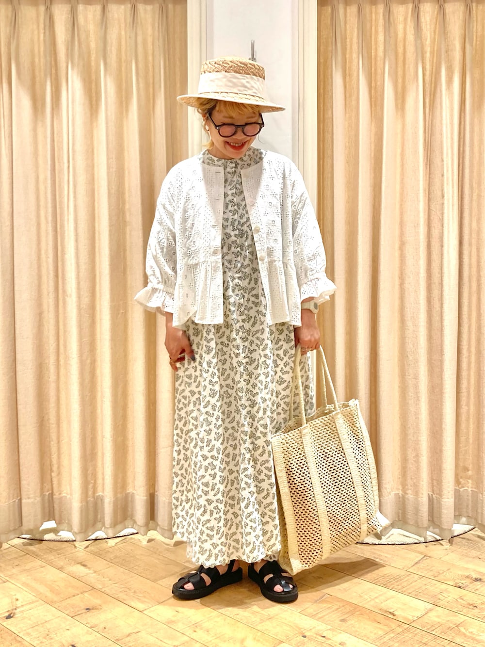 muttyのワンピース「実柄後ろリボンワンピース」を使ったコーディネート