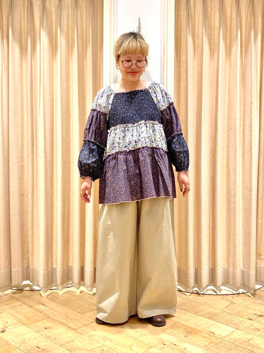 muttyのシャツ/ブラウス「花柄パッチワークブラウス」を使ったコーディネート