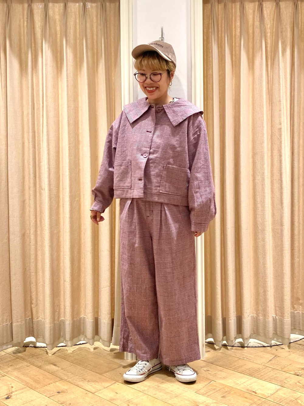 muttyのノーカラージャケット「綿麻ショートジャケット」を使ったコーディネート